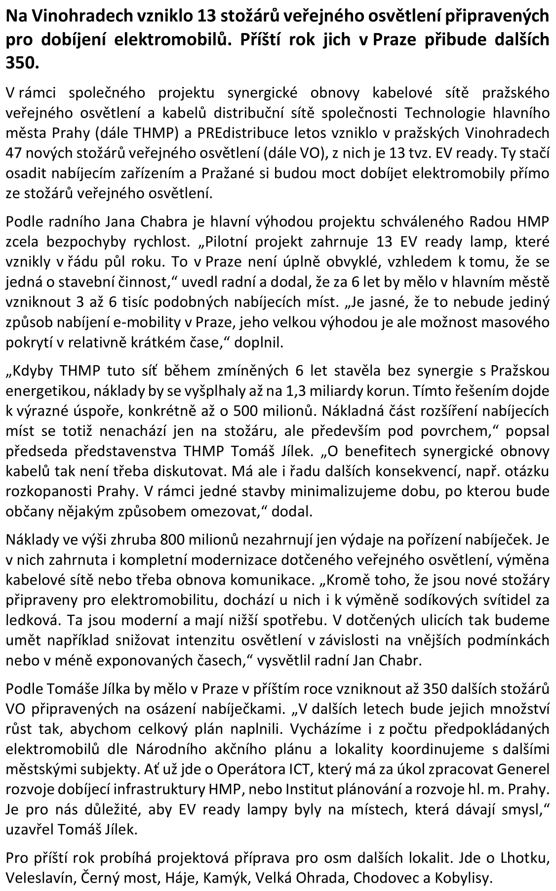 Na Vinohradech vzniklo 13 stožárů veřejného osvětlení připravených pro dobíjení elektromobilů