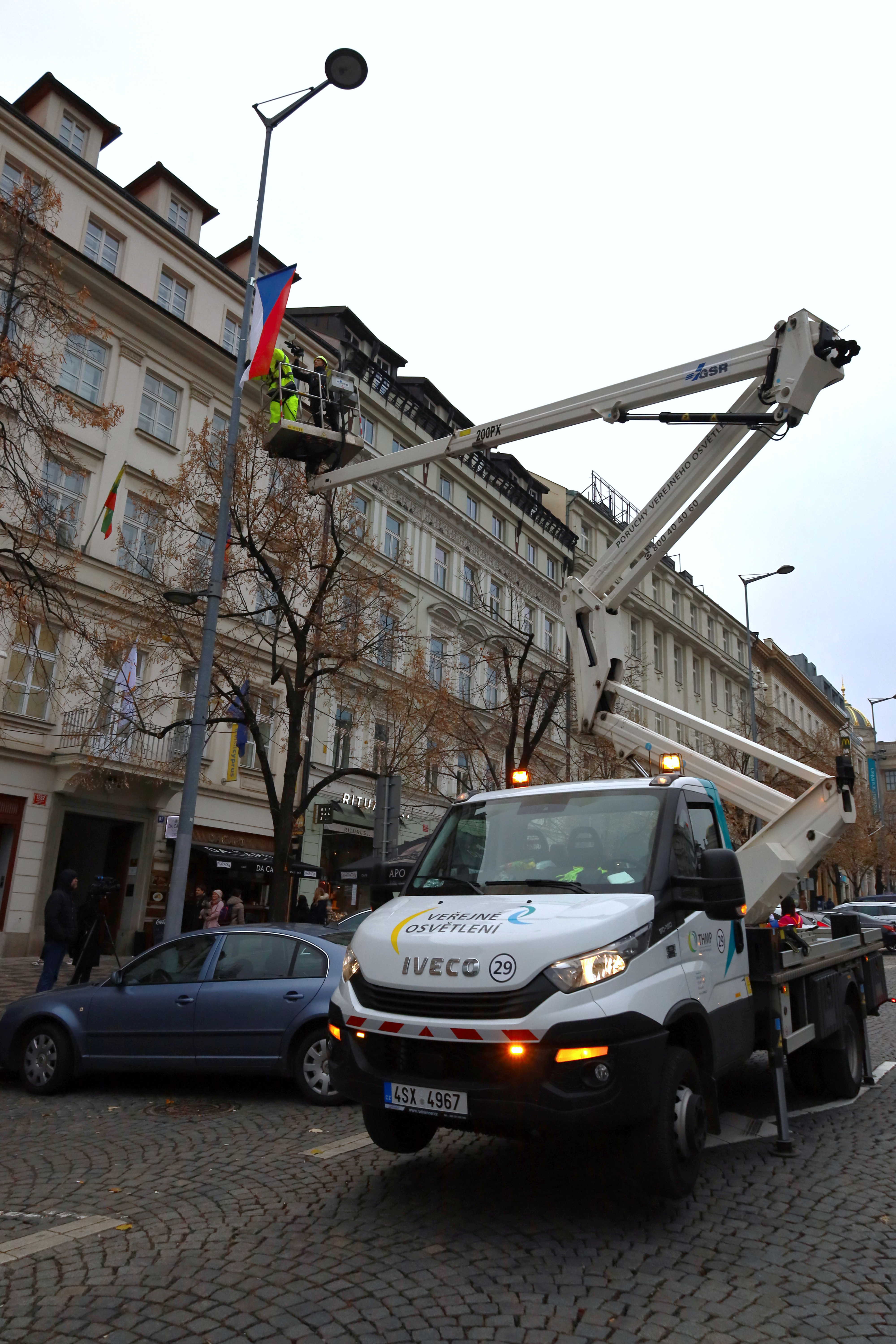 V rámci oslav 32. výročí sametové revoluce vyvěsí městská společnost Technologie hlavního města Prahy (THMP) v historickém centru města státní vlajky a Petřínská rozhledna se v Den boje za svobodu a demokracii rozsvítí do barev národní trikolory. Na průběh instalace vlajek na stožáry veřejného osvětlení se přijel přímo do terénu podívat i radní HMP Jan Chabr a místopředseda představenstva společnosti THMP Tomáš Novotný.