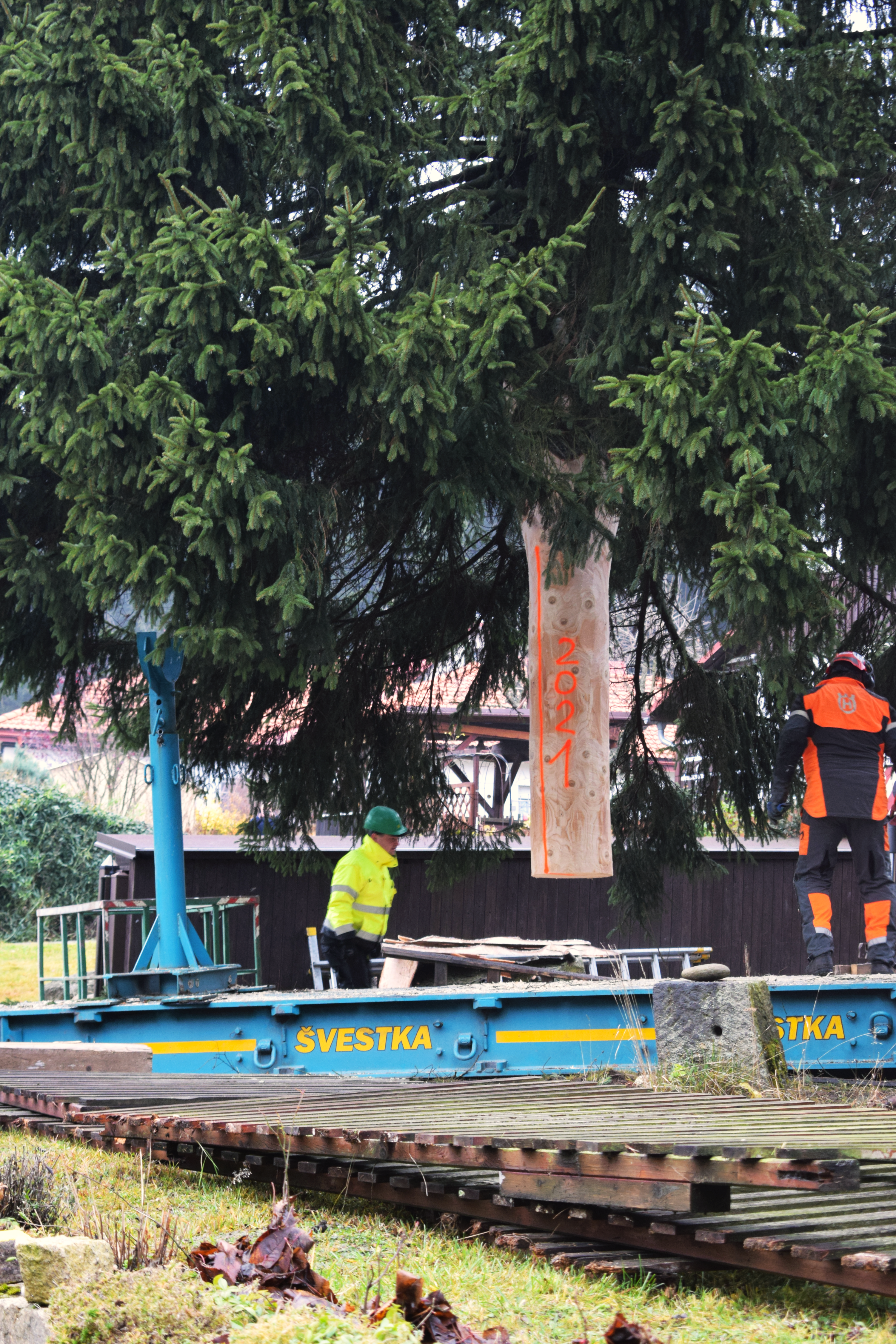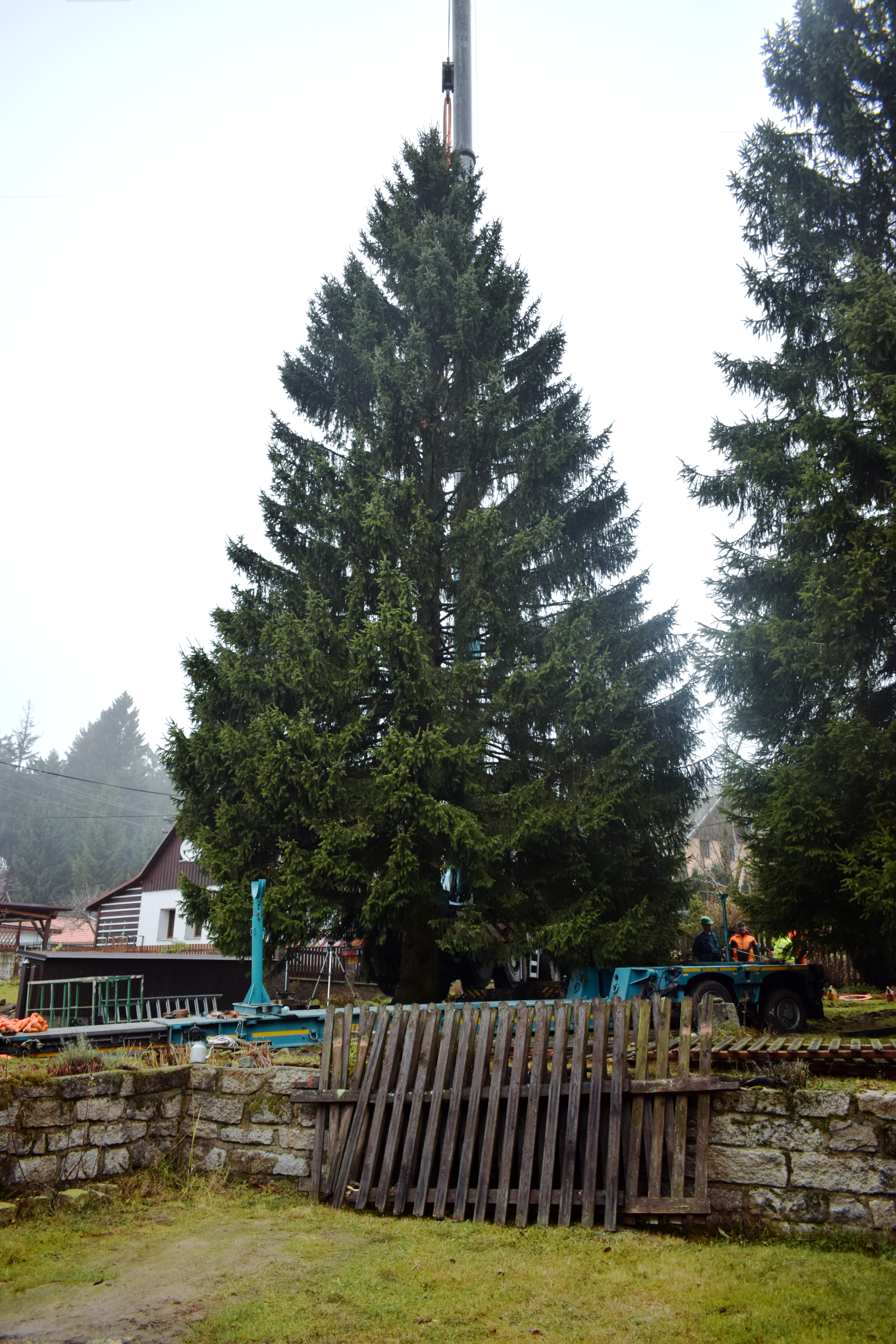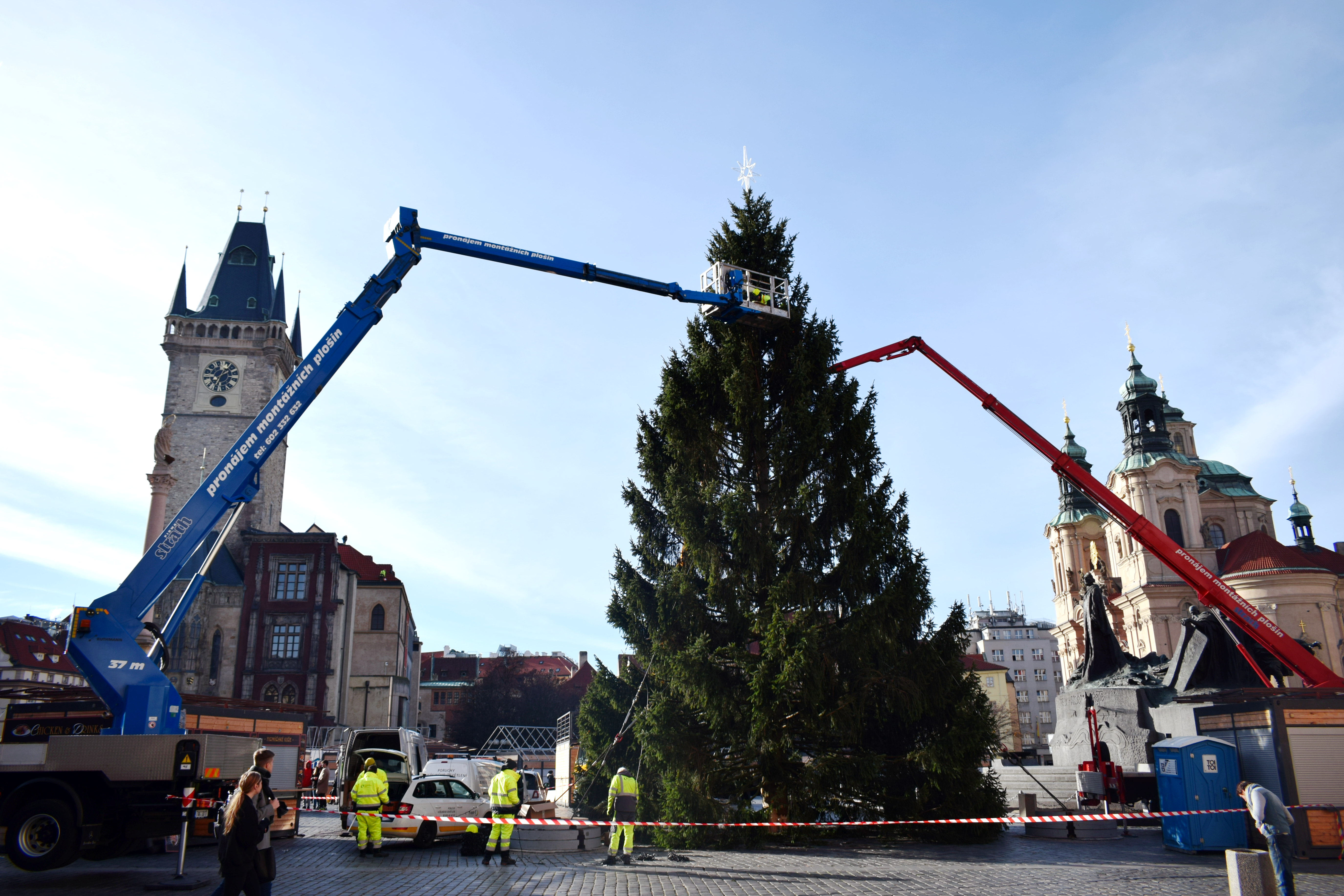 Padesát let rostl na zahradě rodinného domu ve vesnici Dolní Černá Studnice poblíž Jablonce nad Nisou. Od pondělní půlnoci už smrk z podhůří Jizerských hor stojí na Staroměstském náměstí. Jeho kácení, převoz i zdobení zajišťuje již druhým rokem městská společnost Technologie hlavního města Prahy (THMP).