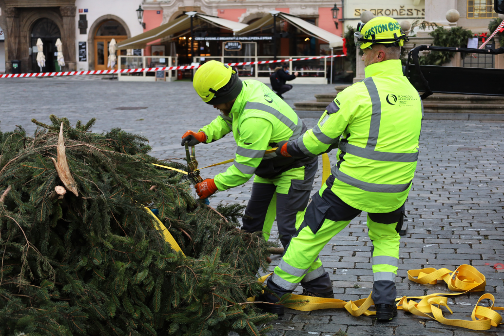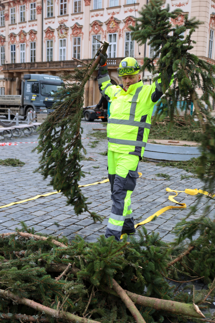 Tradiční vánoční dominanta stála na Staroměstském náměstí v plné kráse do Tří králů. Následující dva dny ji zaměstnanci Technologií hl. města Prahy (THMP) odstrojili a v pondělí 10. ledna odvezli, aby mohla posloužit dál.