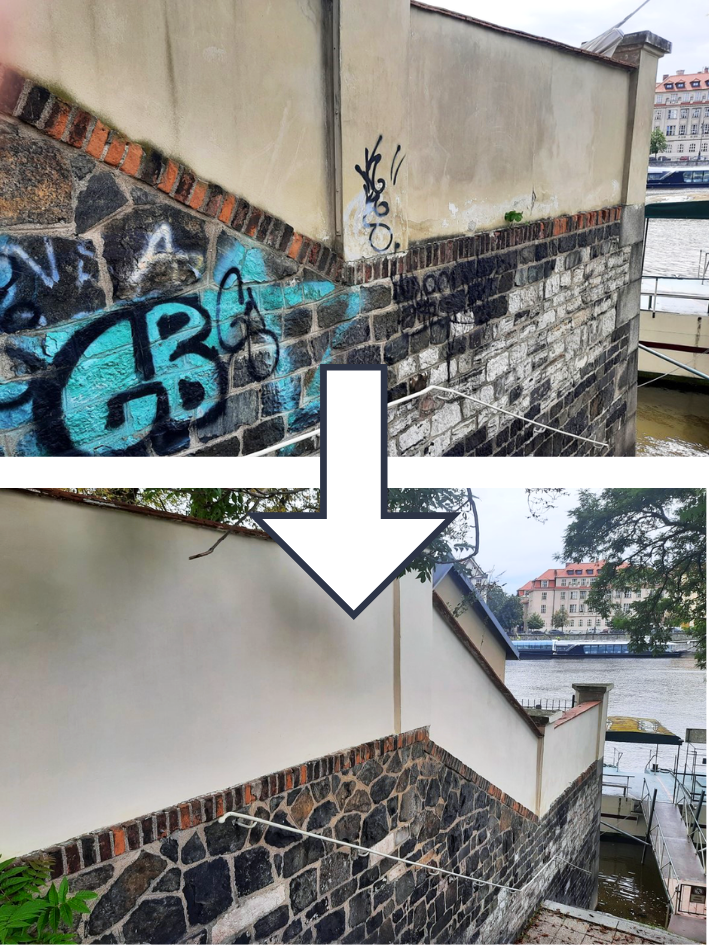 Od začátku léta vyčistily THMP kolem 20 objektů v majetku hlavního města, tj. asi polovinu z přijatých hlášení, z nichž většina se týkala objektů v památkové rezervaci nebo zóně s památkovou ochranou. Došlo k opravě poškozených fasád a následně k aplikaci antigraffiti nátěru, díky kterému případné budoucí výtvory obratem zmizí. „Za nejvýznamnější považujeme vyčištění Novoměstských hradeb v Praze 2. Jedná se zatím o nejrozsáhlejší plochu, ze které odstraňujeme nejrůznější tagy a obrázky. V loňském roce došlo na této památce k vyčištění prvních 90 metrů, letos hodláme v činnosti pokračovat,“ prozradil místopředseda představenstva THMP Tomáš Novotný, do jehož působnosti celý program spadá.