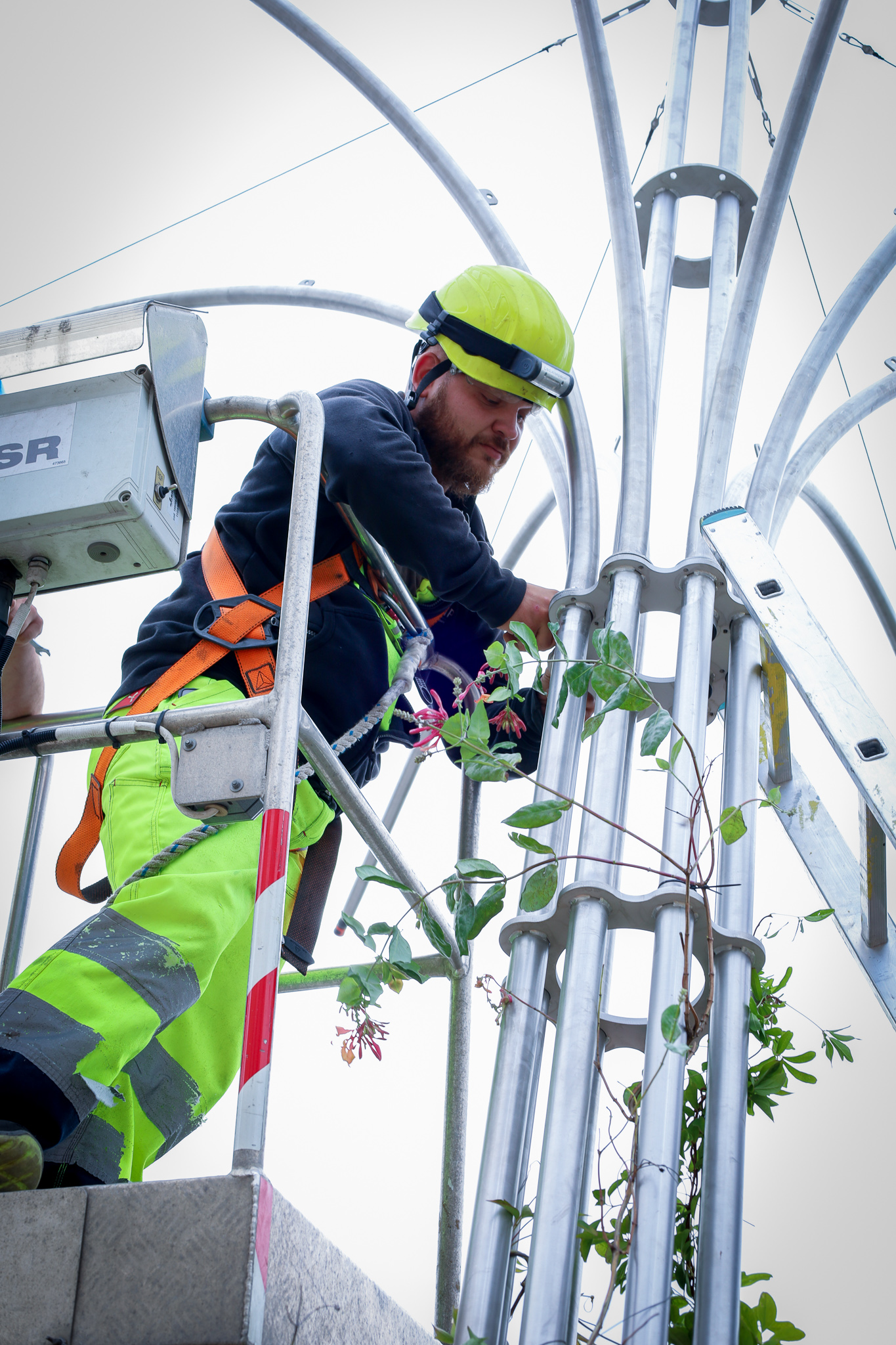 Popínavé rostliny vypěstovala pro potřebu zelených lamp Česká zemědělská univerzita. Jedná se přitom o různé druhy – některé poskytnou stín, jiné stálou zeleň, voňavé a barevné květy nebo jedlé plody. V letošním roce je nejdůležitější jejich správné zakořenění, aby v tom příštím mohly růst. Předpokládá se, že v průběhu příštího roku by zeleň měla popínat již celou konstrukci lampy. O její údržbu se bude po celou dobu pilotního projektu starat MČ Praha 6.