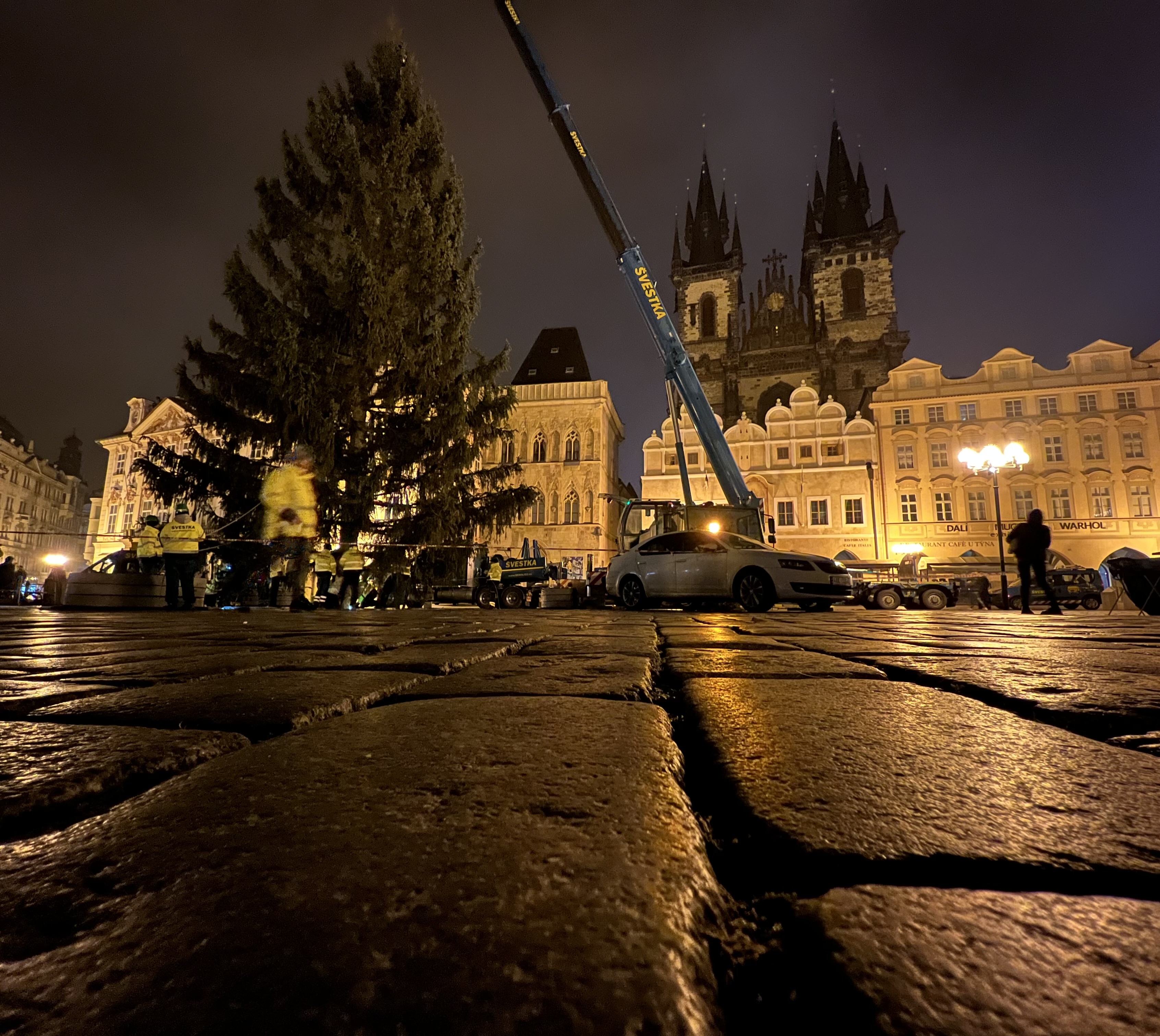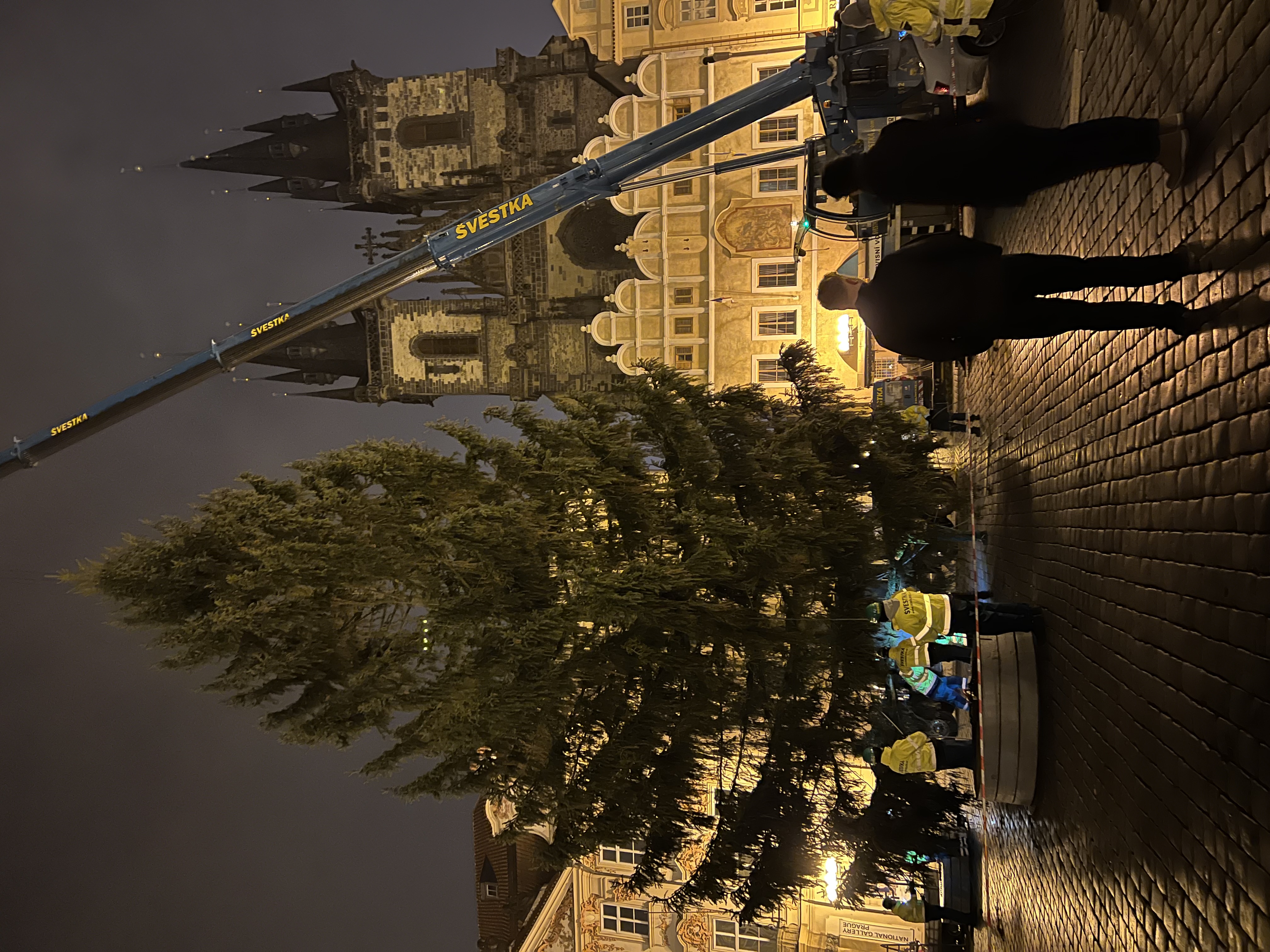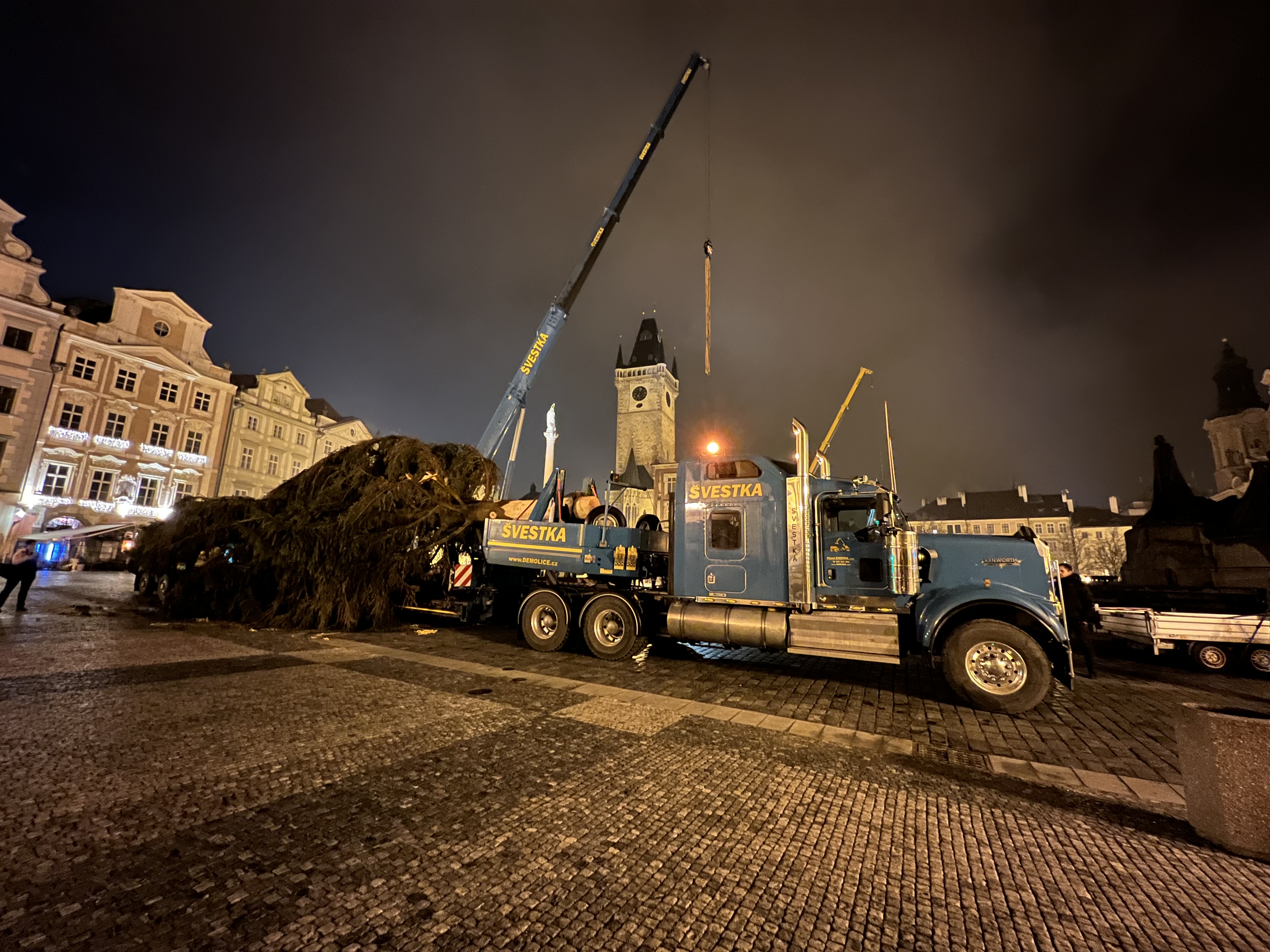 Vyrostl v nadmořské výšce 415 metrů nad mořem v malé obci Mlýny na Děčínsku. Na Staroměstské náměstí dorazil v úterý brzy ráno. Smrk ztepilý se teď bude čtyři dny zdobit, aby o 1. adventním víkendu mohl rozzářit Prahu i úsměvy návštěvníků vánočních trhů. Kácení, převoz i zdobení stromu zajišťuje třetím rokem městská společnost Technologie hlavního města Prahy (THMP).