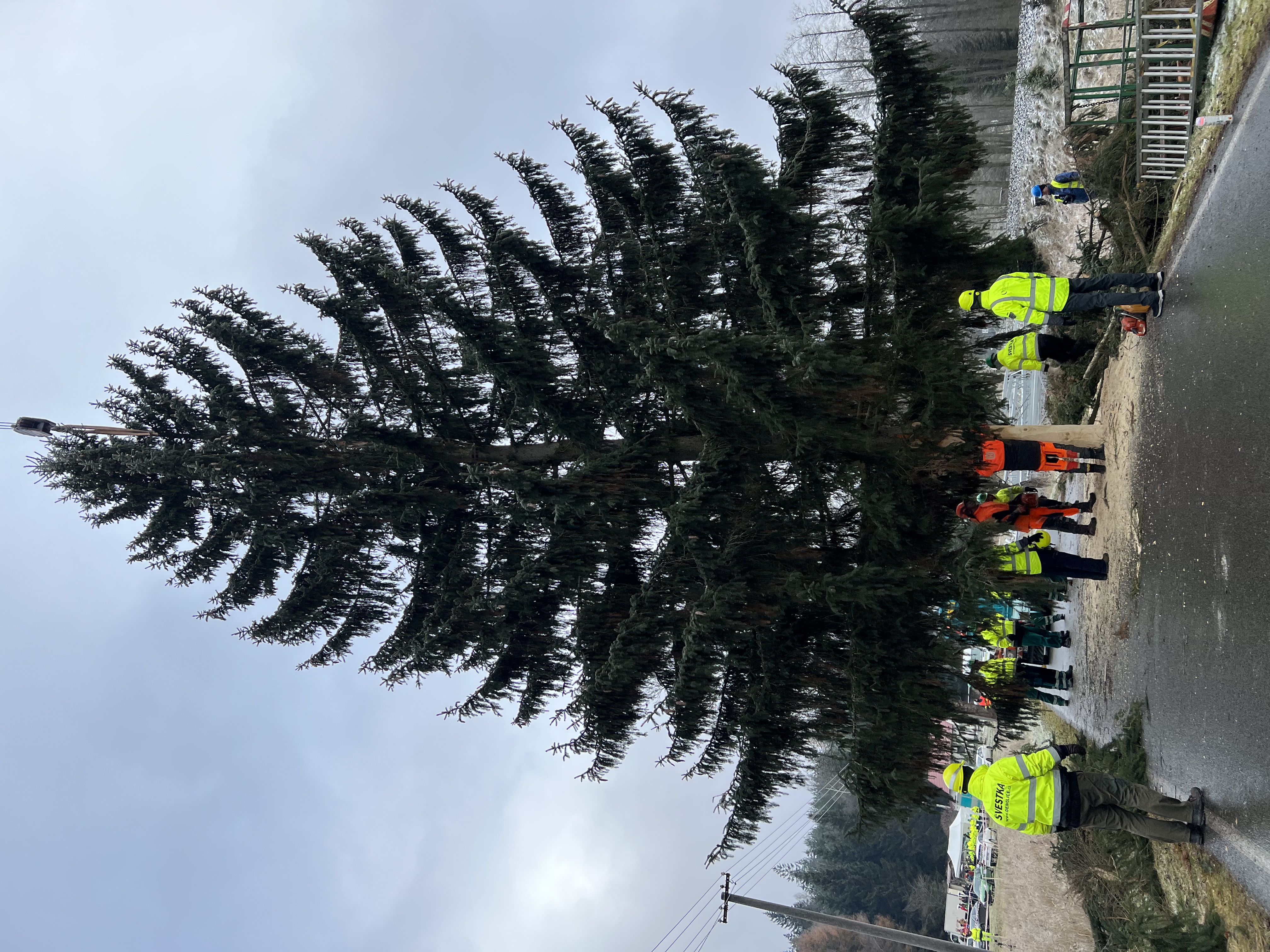 Do Prahy strom dorazil společně s druhým stromem určeným pro Václavské náměstí z malé obce Mlýny poblíž České Kamenice, kde byly pokáceny v neděli 20. listopadu. Akce zaměstnala několik desítek lidí od ranních až do pozdních odpoledních hodin. „Nejen s ohledem na převoz, ale zejména kvůli zajištění bezpečnosti při kácení se jedná o jednu z logisticky nejnáročnějších akcí. Oba stromy se letos kácely s přihlédnutím k tomu, že se v jejich blízkosti nacházela silnice, železniční trať a sloupy vysokého napětí, a tak by je majitel musel stejně odstranit. Jako každoročně se tak jedná o udržitelný přístup, který šetří běžné stromy rostoucí v lese,“ vysvětlil Jan Chabr, radní pro oblast majetku, do jehož gesce celá akce spadá.