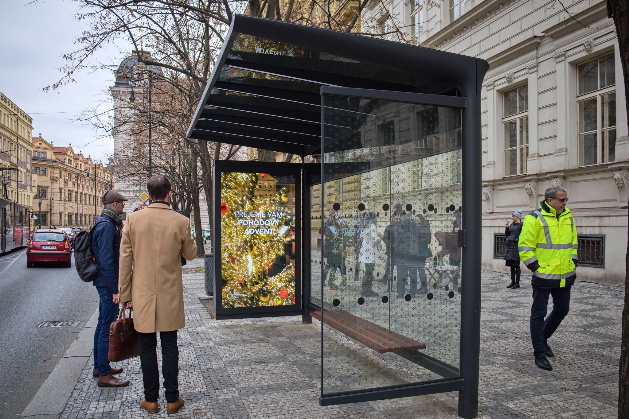 Praha, 23. listopadu – Hlavní město Praha prostřednictvím své akciové společnosti Technologie hlavního města Prahy rozjíždí provoz digitálního informačního kanálu na přístřešcích nového zastávkového mobiliáře v majetku města. Městský informační kanál (MIK) bude pilotně spuštěn na prvních 27 digitálních plochách integrovaných do přístřešků v novém designu města na vybraných tramvajových a autobusových zastávkách MHD.
