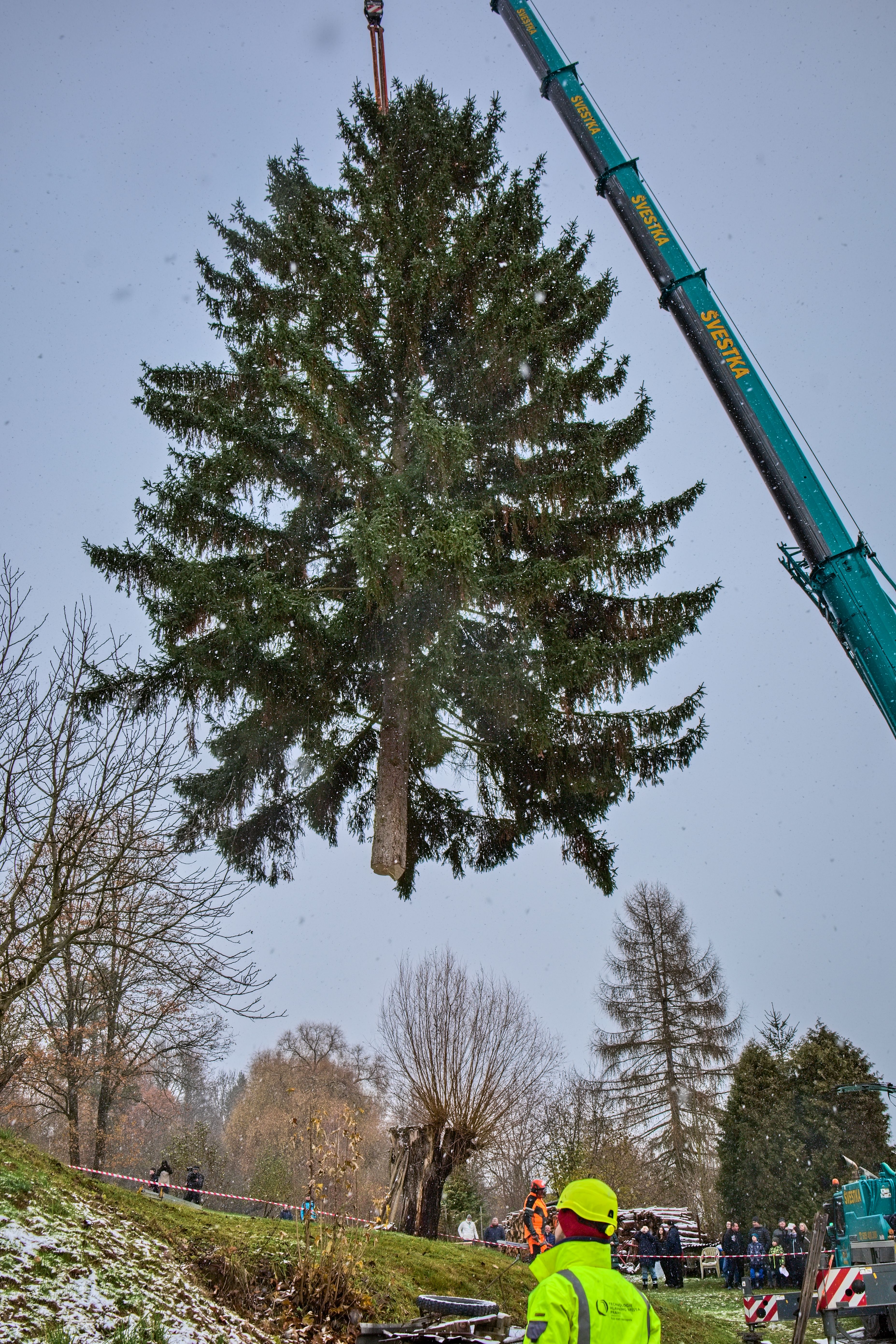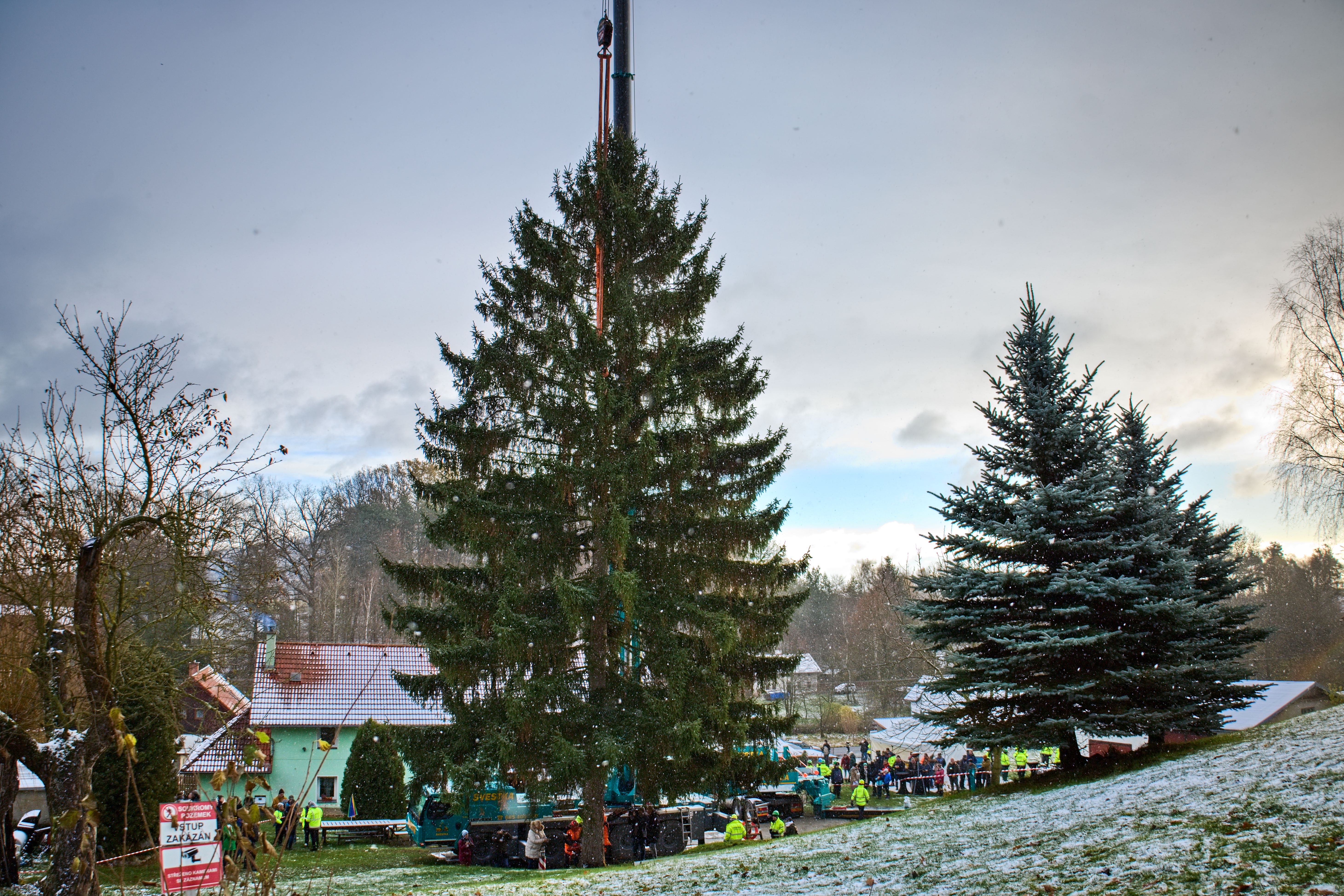 Pertoltice pod Ralskem/Praha, 25. listopadu – Vánoční strom pro nejstarší a nejvýznamnější pražské náměstí už je na cestě z Libereckého kraje do metropole. Krásně rostlý smrk ztepilý byl dnes dřevorubci pokácen na pozemku soukromého majitele v malé obci Pertoltice pod Ralskem na Českolipsku.