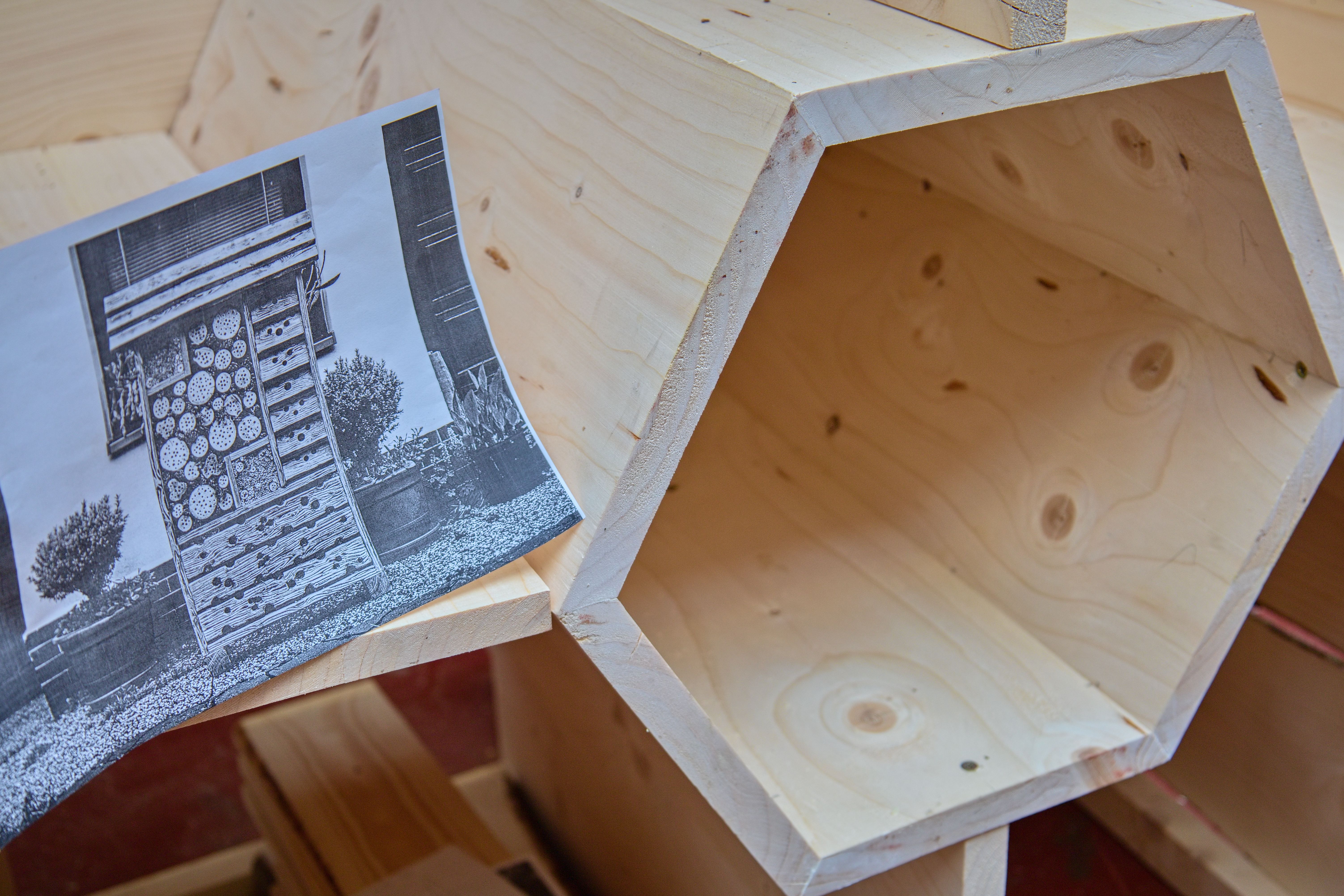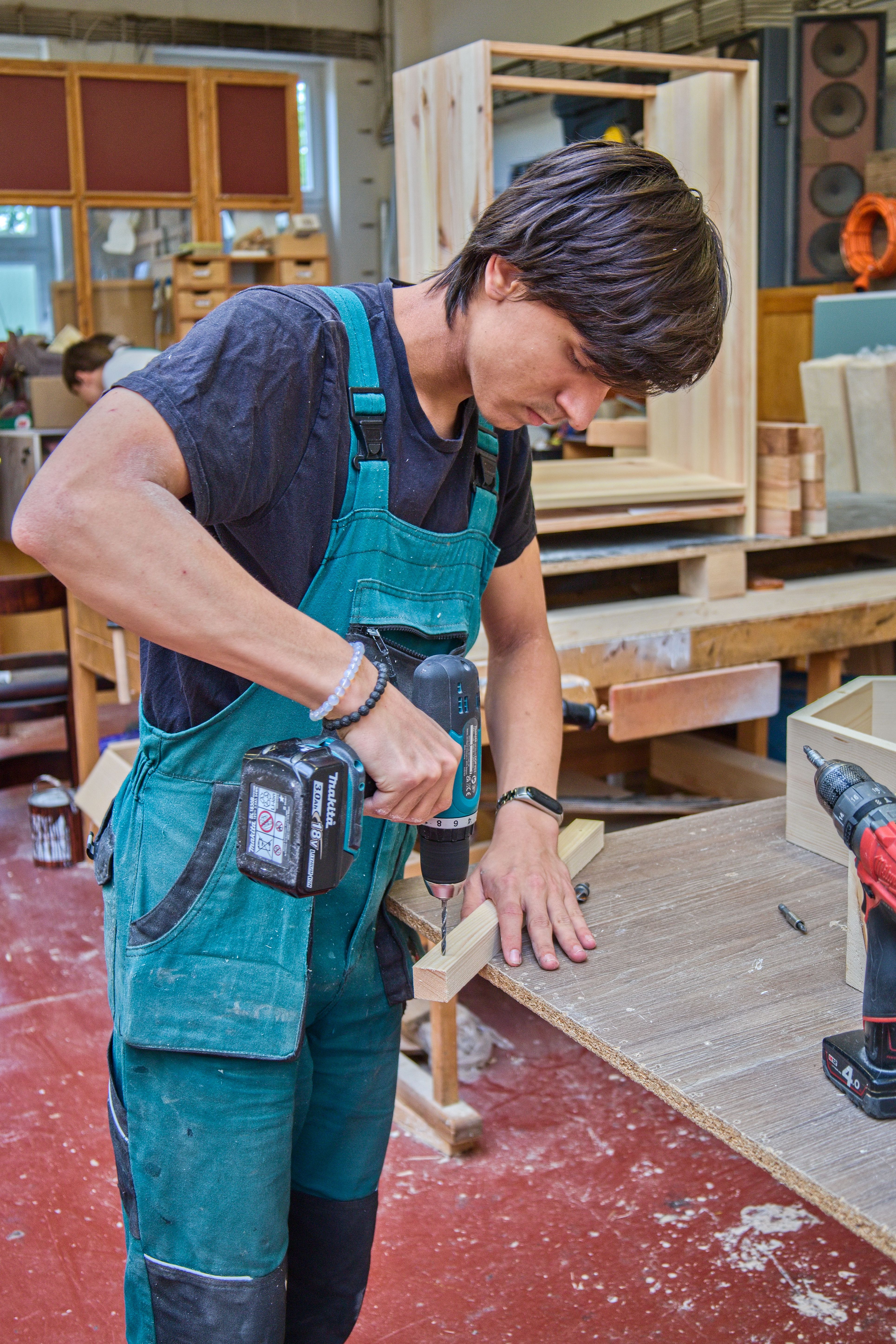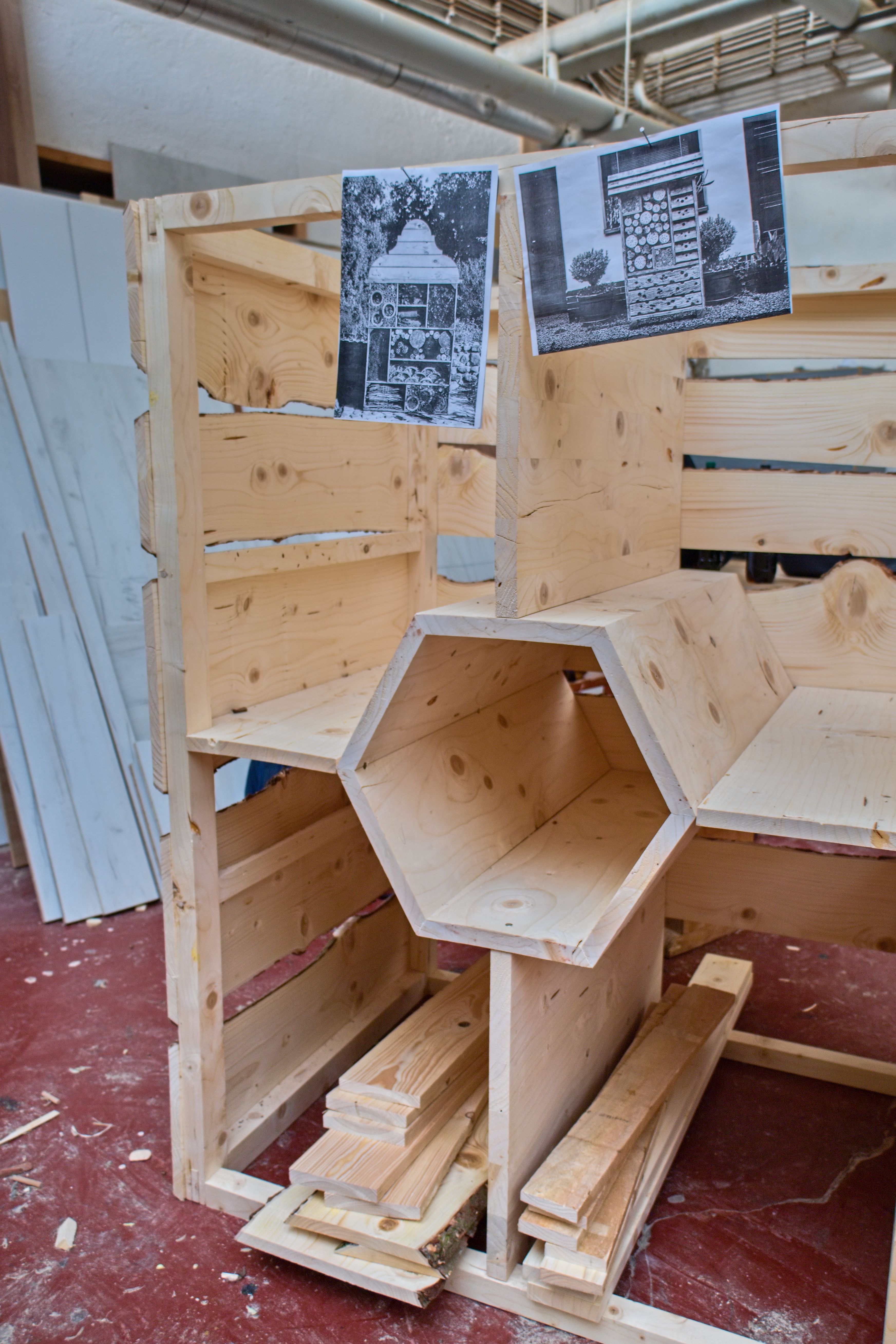 Výrobu žáci Odborné školy Jarov dokončí během května, tak aby vše stihli ještě před prázdninami předat a nábytek sloužil celé léto. „Naše práce začíná až na jaře z připraveného materiálu, který pro nás zpracovali v Dřevo Praha. Nyní už máme kompletně hotovou lavičku, u ostatních prvků jsme s pracemi zhruba v polovině. Pro hmyzí hotel jsme tentokrát zvolili obdélníkový tvar, uprostřed bude vsazen šestihran charakteristický pro včelí úl. Komůrky hotelu předem vyplníme šiškami, hoblinami a dalšími přírodninami. Rovnou se bude moct umístit a lákat brouky, včelky a hmyz,“ upřesnil Vilém Kodíček, zástupce ředitele pro odborný výcvik.