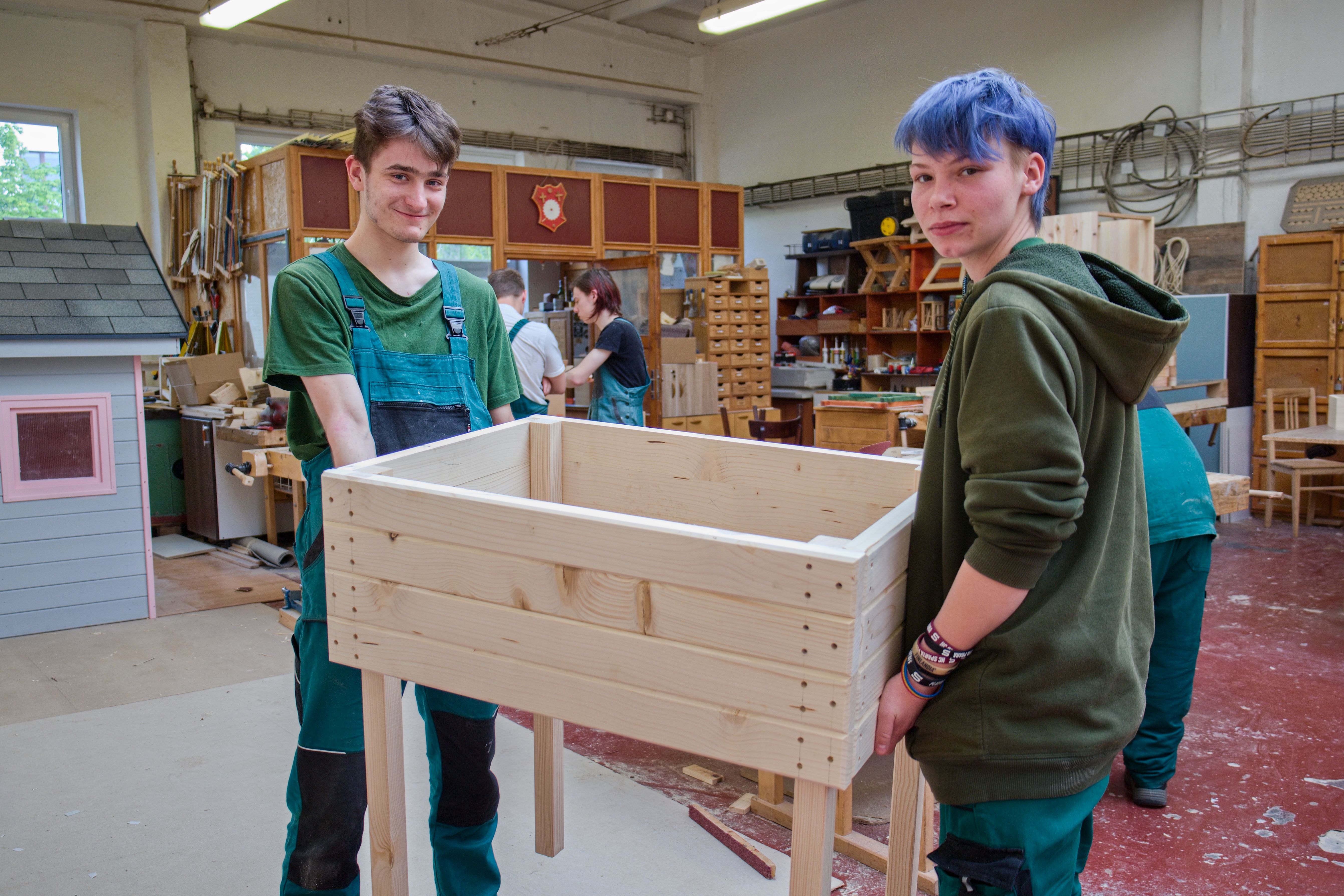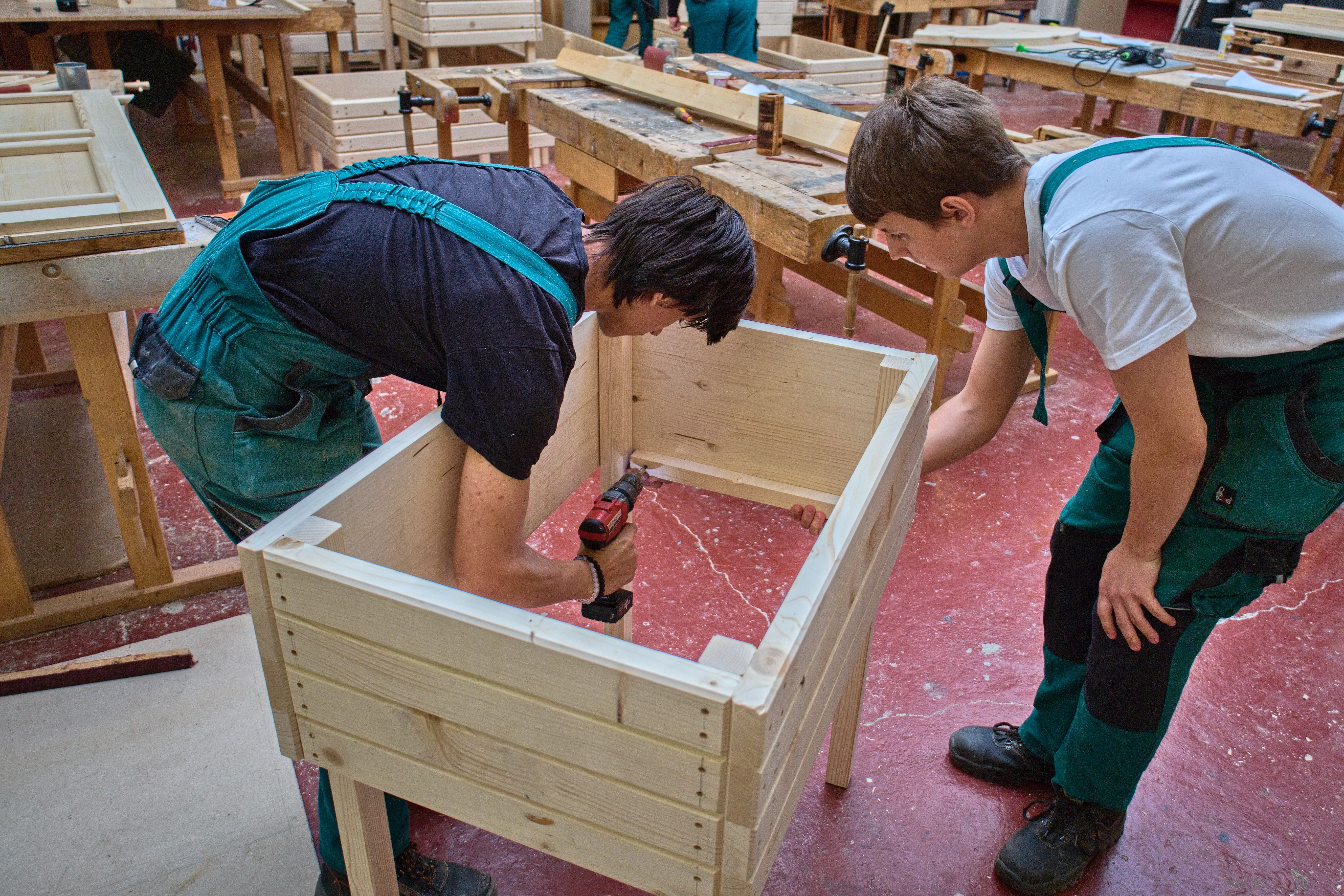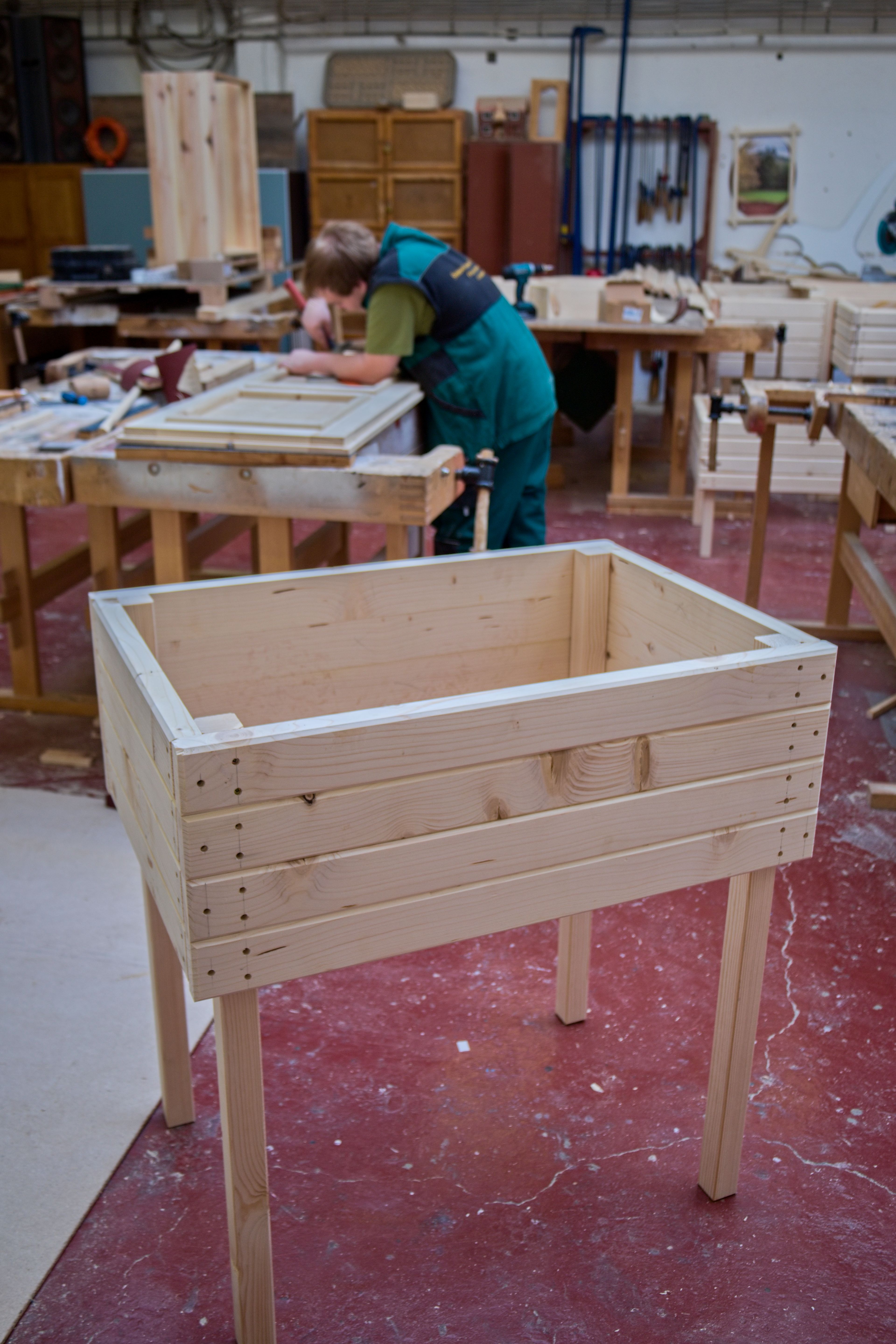 Výrobu žáci Odborné školy Jarov dokončí během května, tak aby vše stihli ještě před prázdninami předat a nábytek sloužil celé léto. „Naše práce začíná až na jaře z připraveného materiálu, který pro nás zpracovali v Dřevo Praha. Nyní už máme kompletně hotovou lavičku, u ostatních prvků jsme s pracemi zhruba v polovině. Pro hmyzí hotel jsme tentokrát zvolili obdélníkový tvar, uprostřed bude vsazen šestihran charakteristický pro včelí úl. Komůrky hotelu předem vyplníme šiškami, hoblinami a dalšími přírodninami. Rovnou se bude moct umístit a lákat brouky, včelky a hmyz,“ upřesnil Vilém Kodíček, zástupce ředitele pro odborný výcvik.