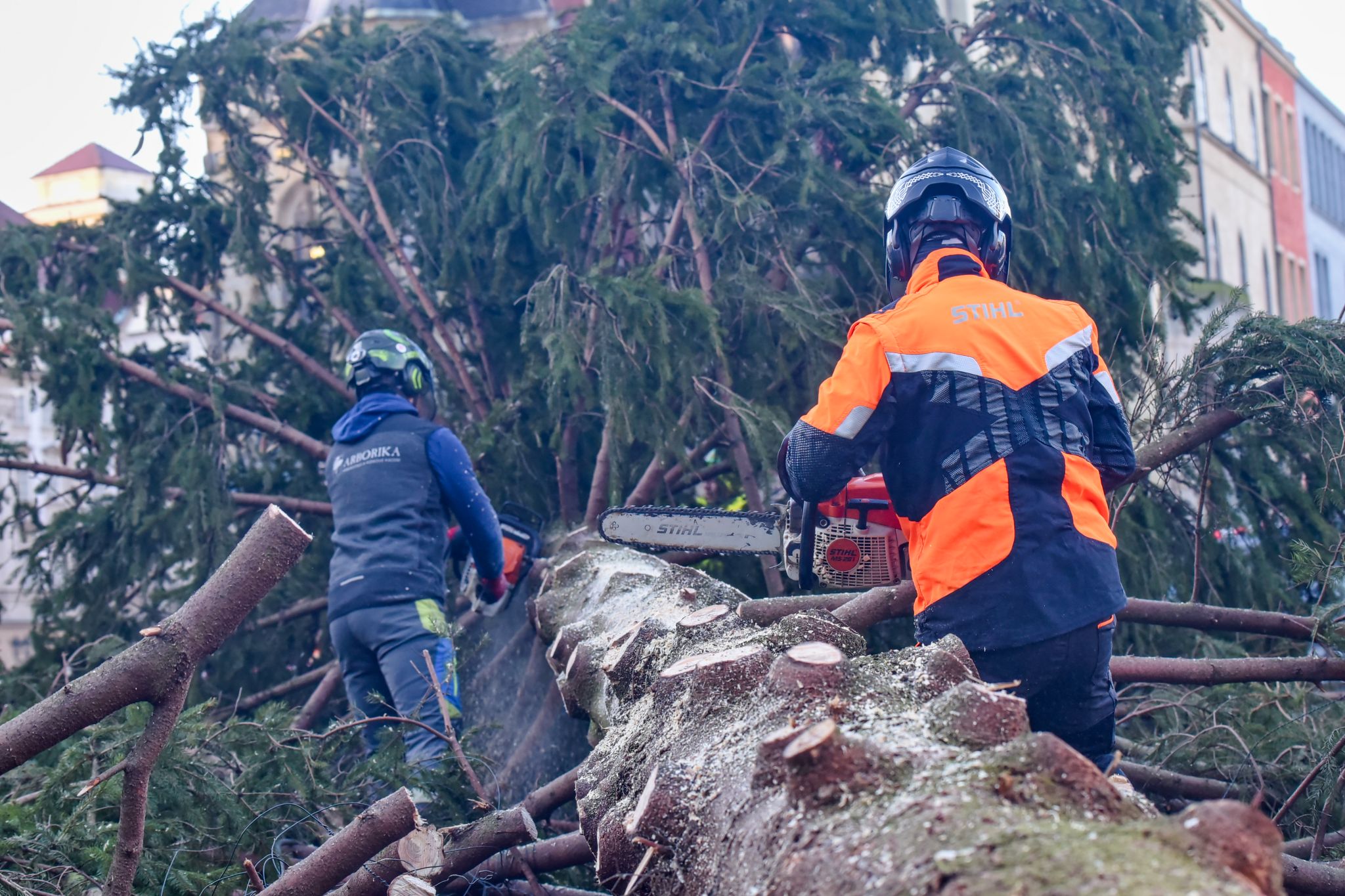 Praha, 9. ledna 2025 – Ze Staroměstského náměstí byl dnes odvezen vánoční strom, který byl symbolem svátečního času v metropoli. Pražané jej stejně jako světelnou výzdobu v pražských ulicích mohli vidět naposledy rozsvícený v pondělí na svátek Tří králů. Městská společnost THMP začala hned následující den s odstrojováním stovek ozdob a několika kilometrů řetězů. Dnes v dopoledních hodinách byl strom s pomocí těžké techniky vyzdvižen z kotvící šachty a po rozřezání kmene na čtyřmetrové klády odvezen k dalšímu zpracování na dřevo pro truhlářskou výrobu. Hlavní město Praha dřevo stromu tradičně využije pro výrobu venkovního nábytku a mobiliáře, který poslouží ve vybraném pražském zařízení sociálních služeb. Část stromu se v podobě truhlářského výrobku symbolicky vrátí také do Krompachu v Lužických horách, odkud byl strom do Prahy přivezen.